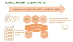 Luokattoman lukion työtavasta kokonaisuus poikkeaa siten, että Globaali maailma-globaali vastuu – kokonaisuuden valitseva opiskelija keskittyy yhden jakson ajan (kuusi viikkoa) globaalien ilmiöiden ajankohtaisiin kysymyksiin. Opiskelijalla ei ole jakson aikana muita opiskeltavia kursseja. Globaalikasvatuksen kokonaisuus koostuu pakollisesta yhteiskuntaopin kurssista (YH3), valtakunnallisista lukion syventävistä teemaopinnoista (TO1, TO2 ja TO3) ja koulukohtaisesta soveltavasta kurssista (UE7). Kaikkia viittä kurssia tarkastellaan globalisaation näkökulmasta ja opetuksessa painotetaan YK:n Agenda 2030 tavoitteita.