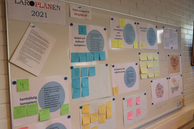 Parallellt med det arbetet diskuterade vi också skolans värdegrund, vilken fick sin första version ungefär samtidigt som kompetenserna. Då hade vi alltså formulerat den del av läroplanen som vi skulle hänvisa till under resten av arbetet. Ett naturligt följdsteg hade varit att avstämma våra texter med studerandekåren och deras vårdnadshavare. Dessvärre klev vi just då in i vårens coronakris, vilket innebar att vi blev tvungna att skjuta upp det arbetet till hösten.